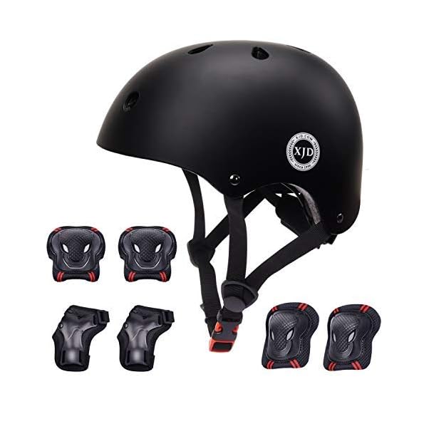 XJD Kids Bike Helmet Protective Gear Set Age 2-13 years Knee Pads Elbow Pads Wrist Guards and Adjustable Skateboard Helmets for Scooter Cycling Roller Skating Boys Girls (Matte Black, M)