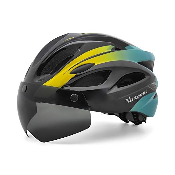 Victgoal Adults Bike Helmet for Men Women Detachable Magnetic Goggle Visor Bicycle Helmet with LED Rear Light Cycling Road Mountain Cycle Helmet (Black Cyan)