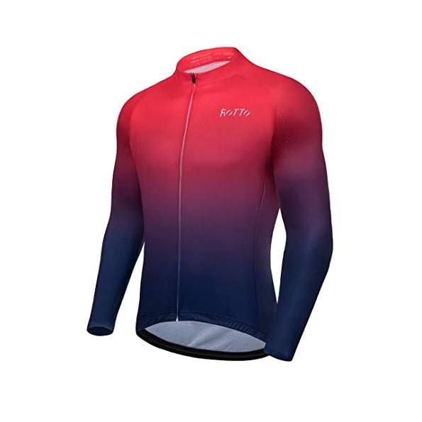 ROTTO Cycling Jersey Mens Bike Shirt Long Sleeve Cycle Top with Pockets Gradient Color Series