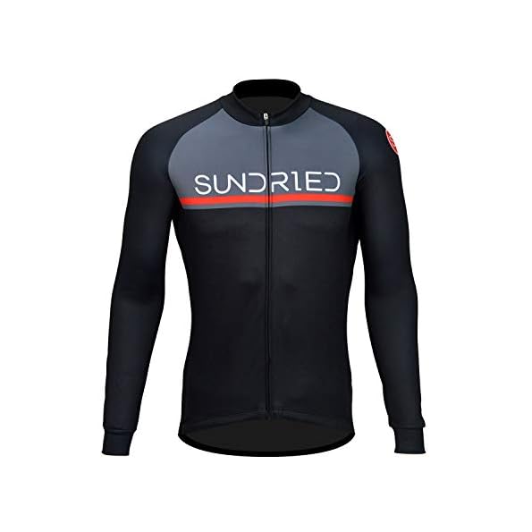 Sundried Mens Long Sleeve Cycling Jersey Road Bike MTB Bicycle Clothing (Black, XL)