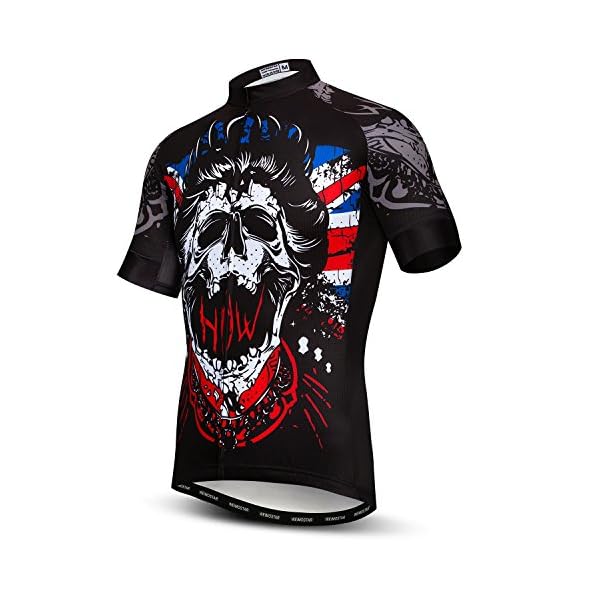 Mens Cycling Jersey Short Sleeves Mountain Bike Shirt MTB Top Zipper Pocket Reflective Skull