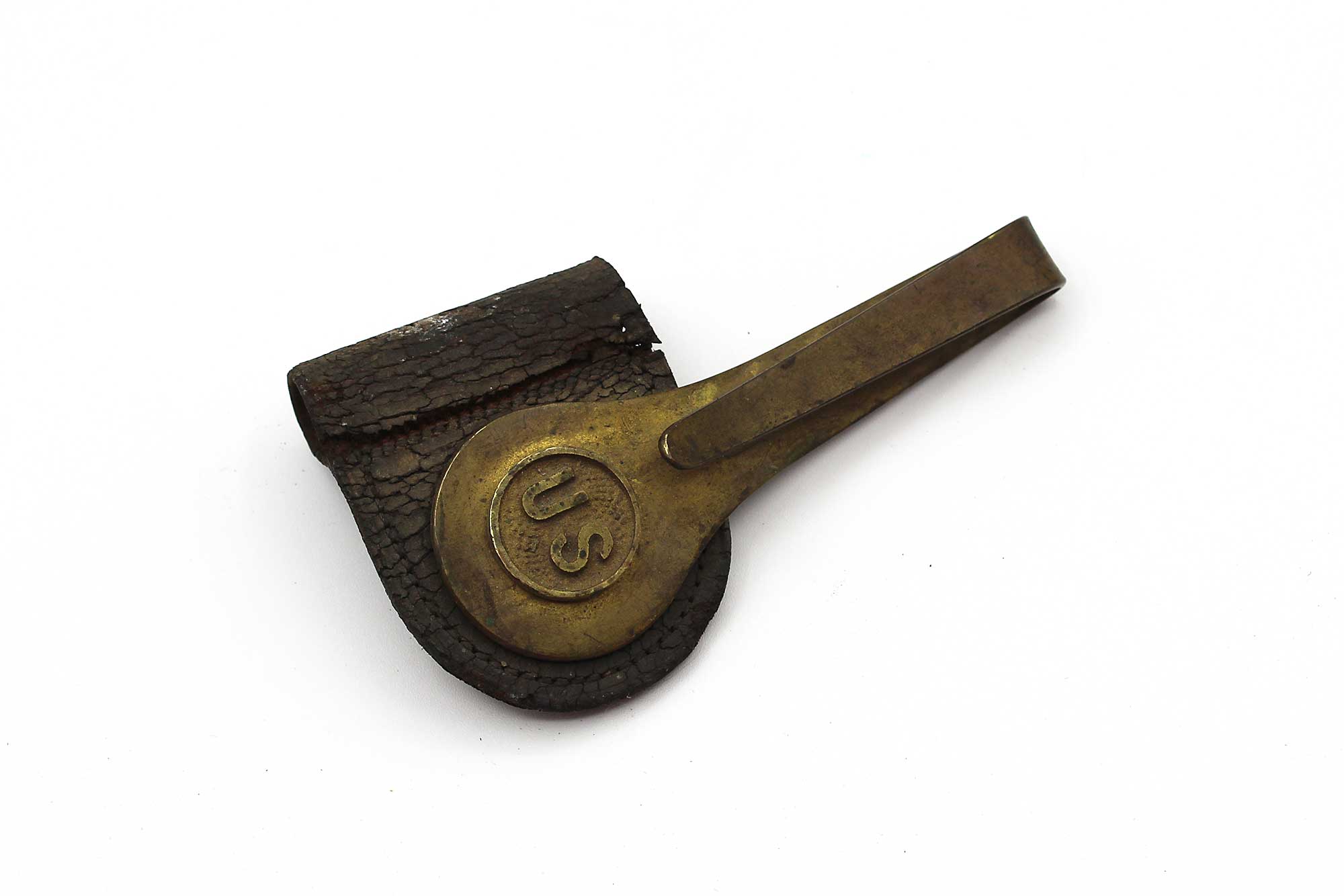 US Brass and Leather Bayonet Hanger (Damaged) . BAYO739